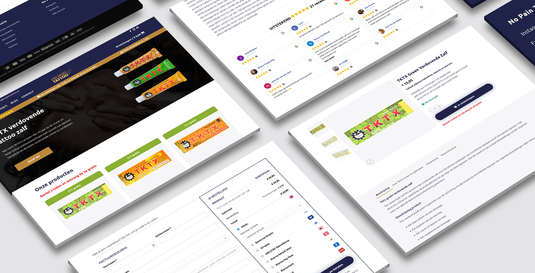 In Your Face Media heeft voor No Pain Tattoo een WooCommerce webshop gemaakt en deze webshop bovenaan in Google gezet met een ijzersterke linkbuilding campagne. De webshop verkoopt met veel succes verdovende tktx tattoo zalf. Door op zoekwoorden met hoge zoekvolumes op nummer 1 te staan weten nieuwe klanten de webshop dagelijks te vinden. De webshop staat op tktx zalf, verdovende tattoo zalf, tktx gold en diverse andere zoekwoorden op nummer 1 in Google. De webshop bezet in totaal 15 nummer 1 posities in Google. Dit zorgt ervoor dat de webshop veel meer omzet genereert dankzij zoekmachine optimalisatie en linkbuilding.